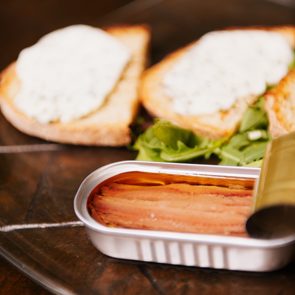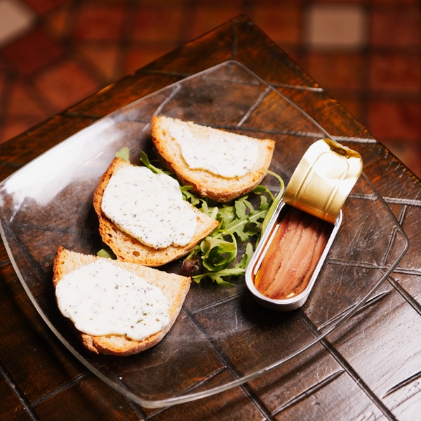 Le acciughe del Mar Cantabrico, scelte per la loro salinità equilibrata, vengono adagiate su crostini al burro aromatico con erbe del Salento. Il burro, raffinato e aromatico, bilancia la sapidità del pesce, creando un inizio elegante per il percorso pugliese che offriamo. Una piccola leccornia che anticipa l’anima del menù.