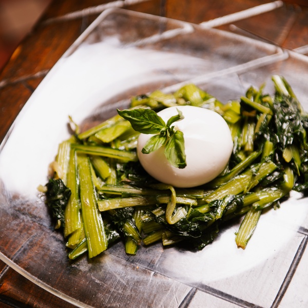 La burrata, con il suo cuore filante, trova il suo complemento ideale nella cicoria saltata: un contrasto di consistenze e sapori che parla di campagna e mare insieme. Da Officine degli Apuli, questo abbinamento è simbolo della nostra identità: latticini pugliesi lavorati al meglio, con verdure locali e condimenti che rispettano la tradizione.